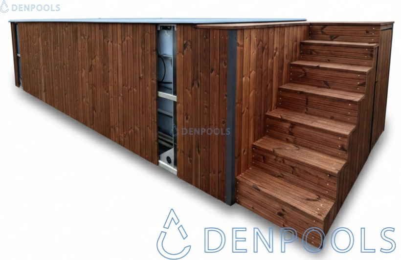 Unsere Swimmingpools werden aus geschlossenen Stahlprofilen (2–5 mm) hergestellt und auf einem stabilen Rahmen mit einer wasserdichten Basis aus OSB-Platten montiert. Sie werden komplett gebrauchsfertig geliefert, fertiggestellt mit thermisch behandelten Holzbrettern, mit der Möglichkeit einer Lackierung in jeder Farbe. Die Stahlkonstruktion mit Korrosionsschutz garantiert Widerstandsfähigkeit gegenüber Wetterbedingungen, während die Farbe RAL 7016 ein modernes Aussehen verleiht. Langlebig und leicht zu warten, gewährleisten sie jahrelang Gebrauchskomfort.