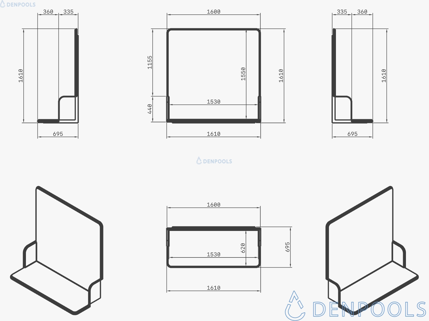 Unsere technischen Räume sind mit besonderer Sorgfalt auf Haltbarkeit und Widerstandsfähigkeit gegenüber Wetterbedingungen ausgelegt, um ihre Langlebigkeit zu gewährleisten. Darüber hinaus integrieren sich ihr modernes und ästhetisches Erscheinungsbild perfekt in die Umgebung des Pools ein, ohne dessen allgemeines Erscheinungsbild zu beeinträchtigen.