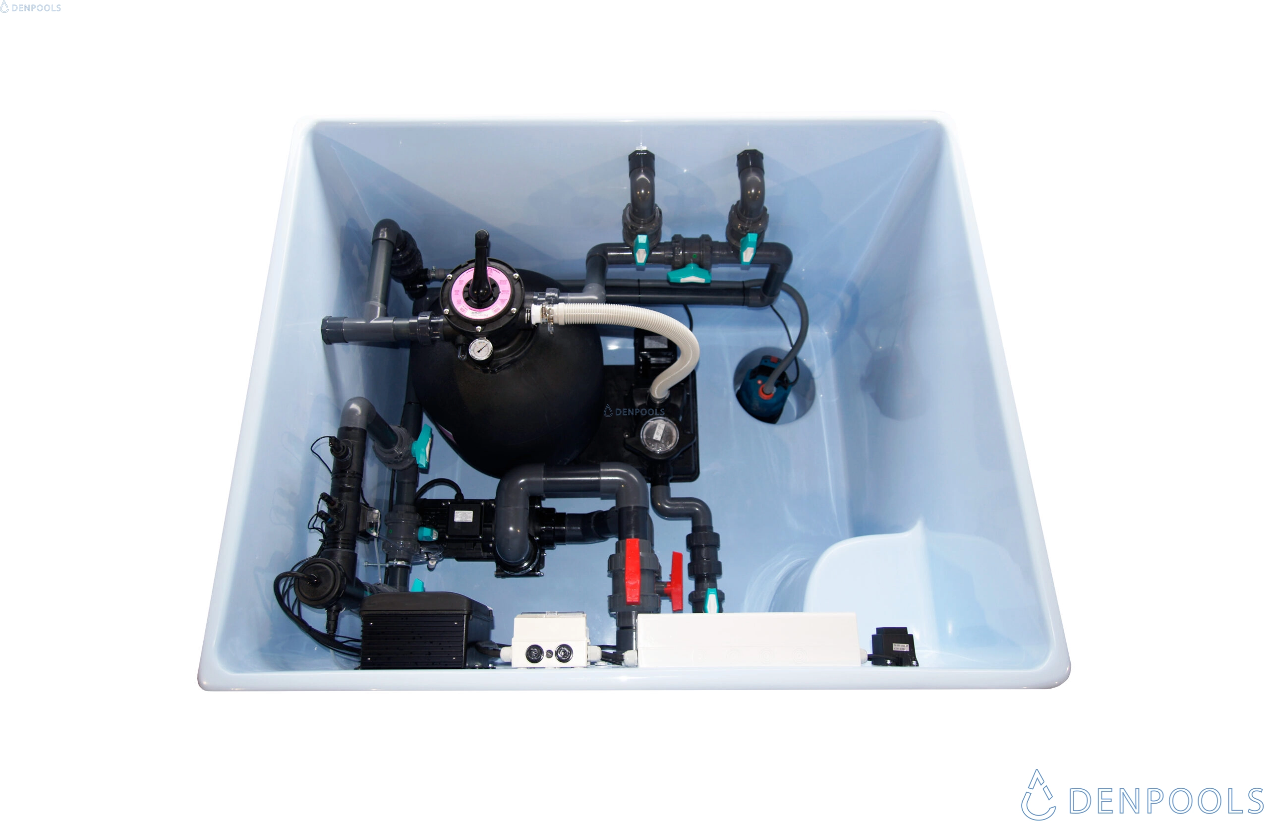 La nostra stanza tecnica è una versione individuale e multifunzionale. Se non hai uno spazio separato per la tecnica della tua piscina, questa stanza in GFK prefabbricata offre ampio spazio.