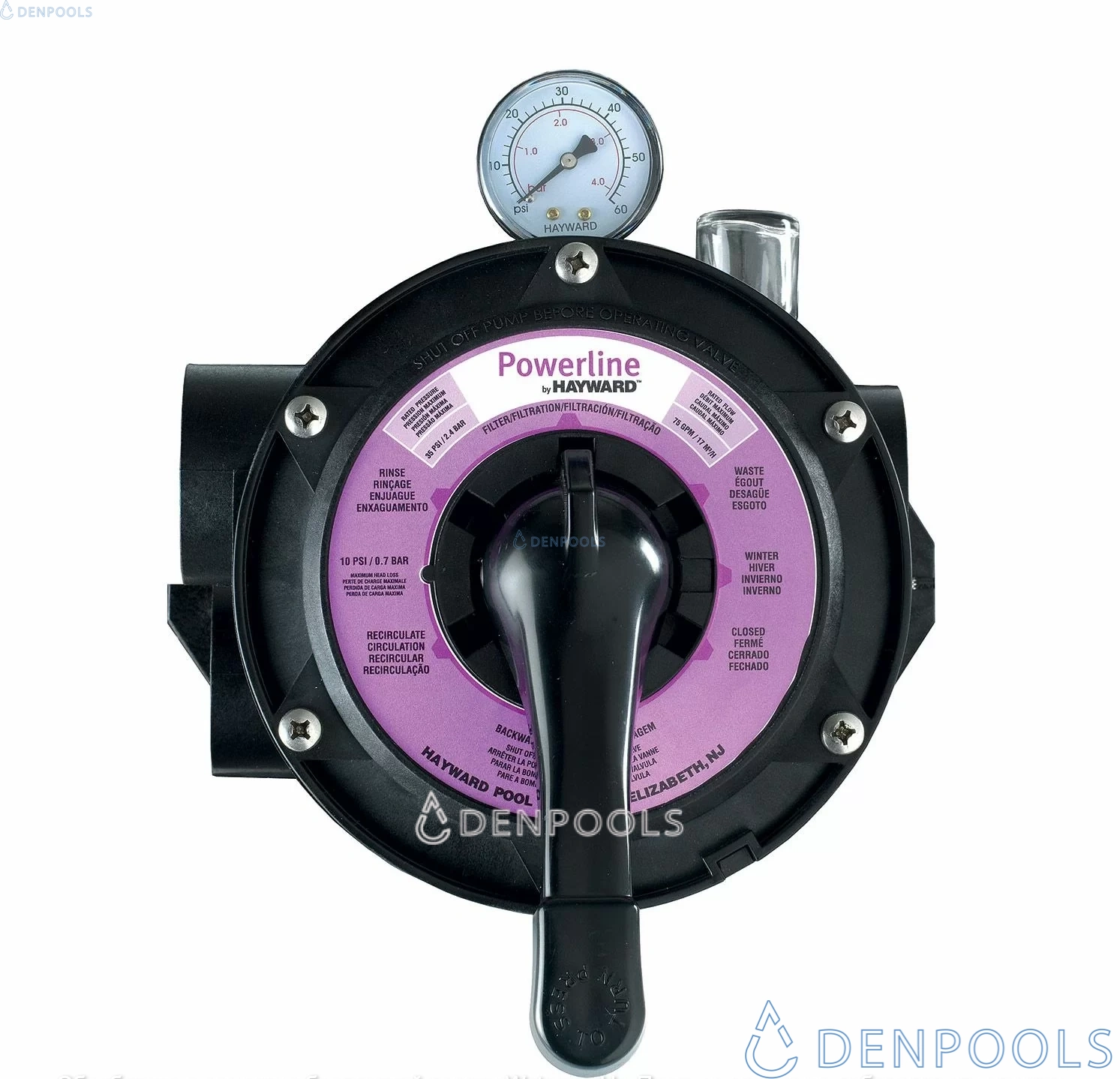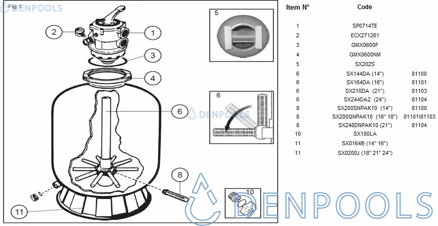 Der Filter ist mit einem 6-Positionen-Ventil mit oberem Anschluss ausgestattet. Das Ventil ist mit einer Trübungsanzeige und einem Manometer zur Druckkontrolle ausgestattet. Der Filtertank besteht aus hochfestem, geblasenem Polyethylen, das resistent gegen Feuchtigkeit, UV-Strahlen und Chemikalien für Swimmingpools ist. Als Filtermedium
