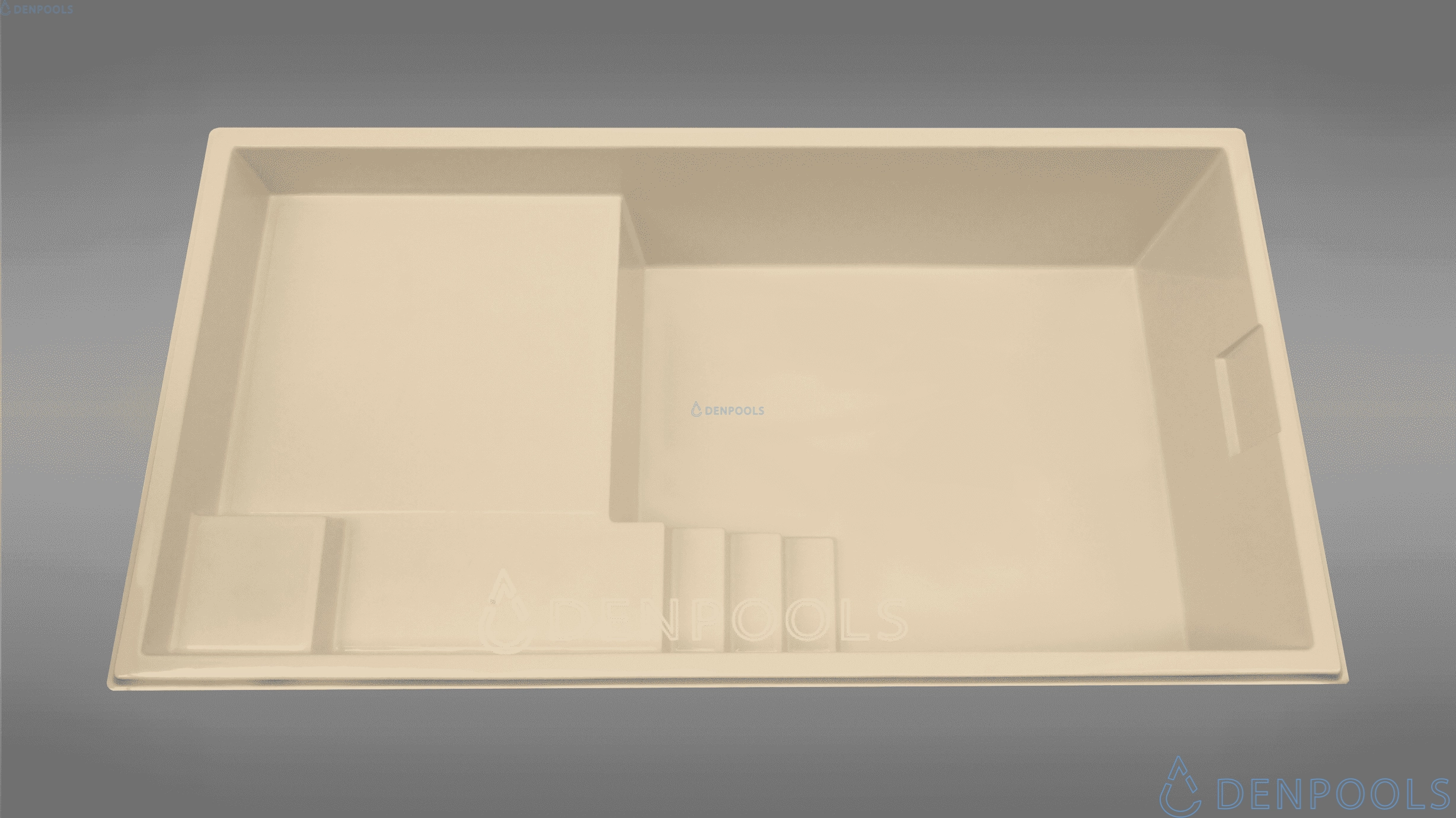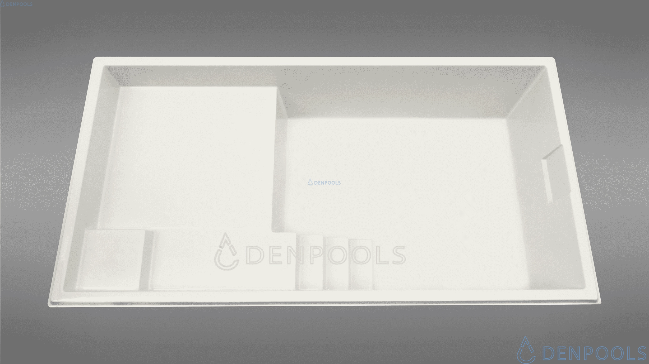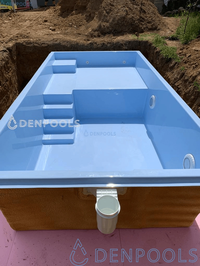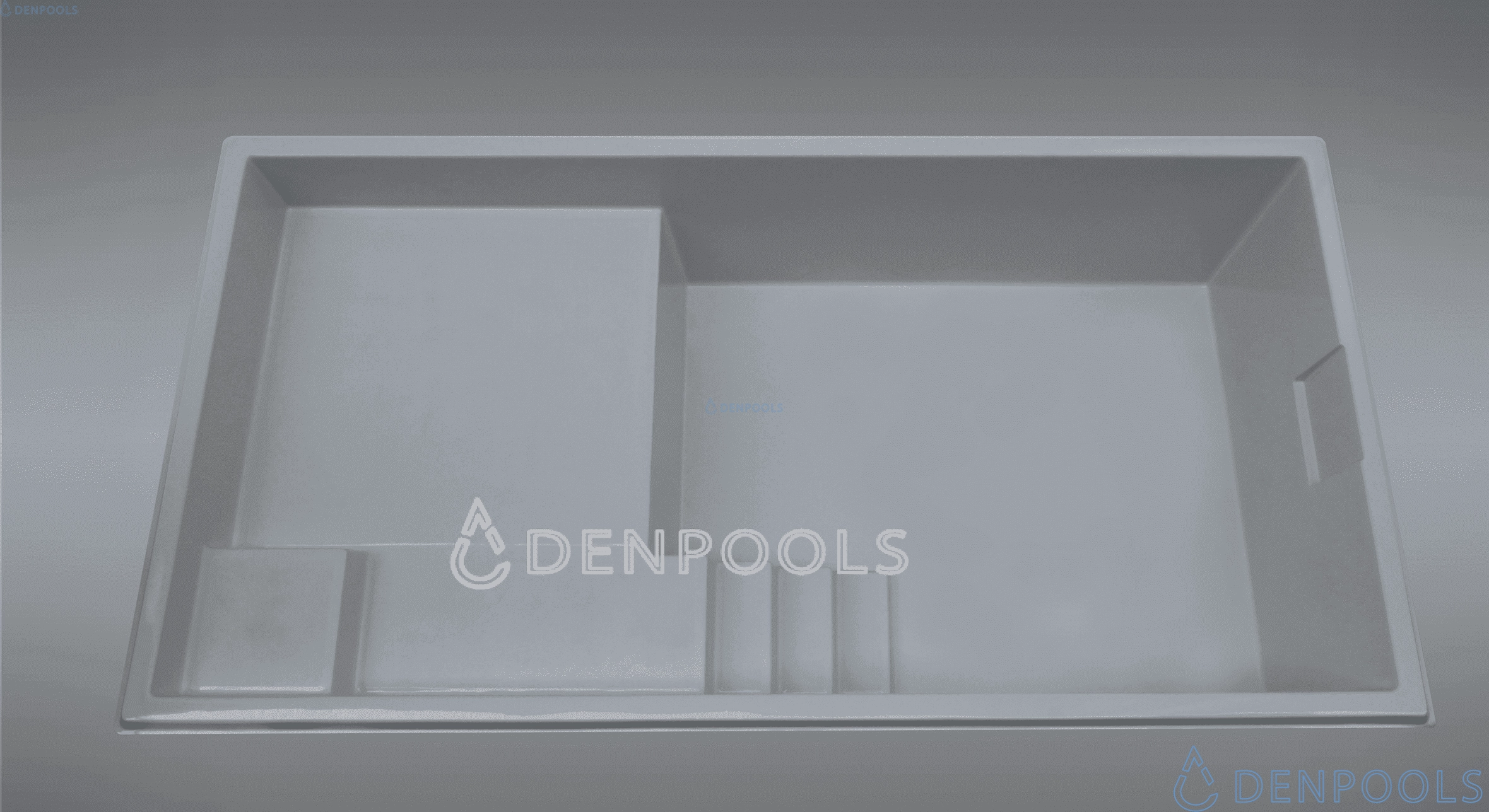 hochwertiger, rechteckiger Glasfaserpool mit einer Leiter, die auch als Sitzplatz genutzt werden kann