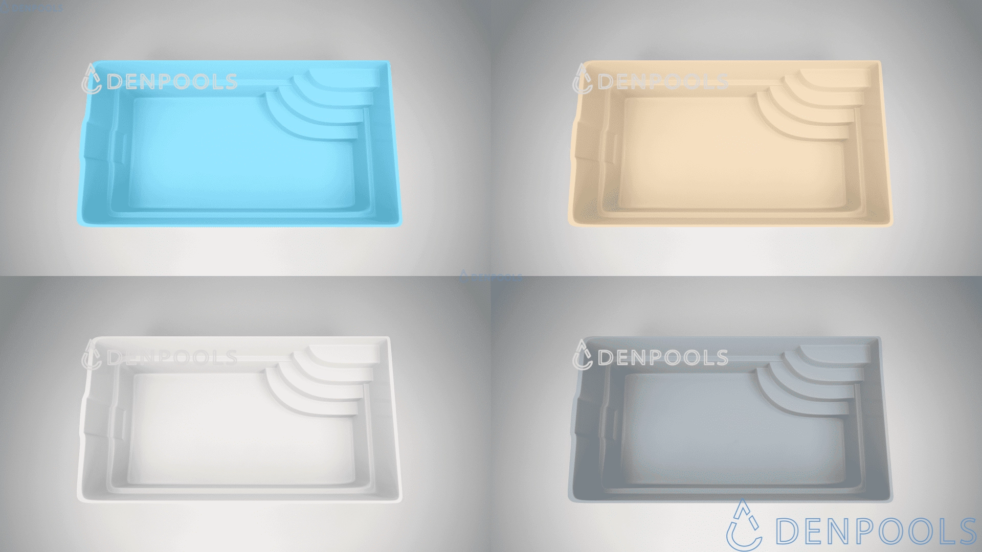 Um den genauen Preis des Pools zu berechnen, wählen Sie die Größe und das Modell des Pools, das Sie interessiert, und eine der vier Farben.