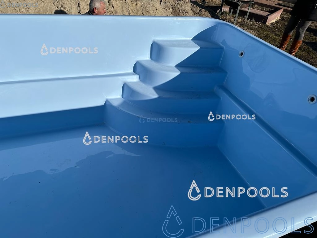 Rechteckiger Pool aus hochwertigem Glasfaserverbundmaterial mit einer Treppe, die auch als Sitzplatz genutzt werden kann