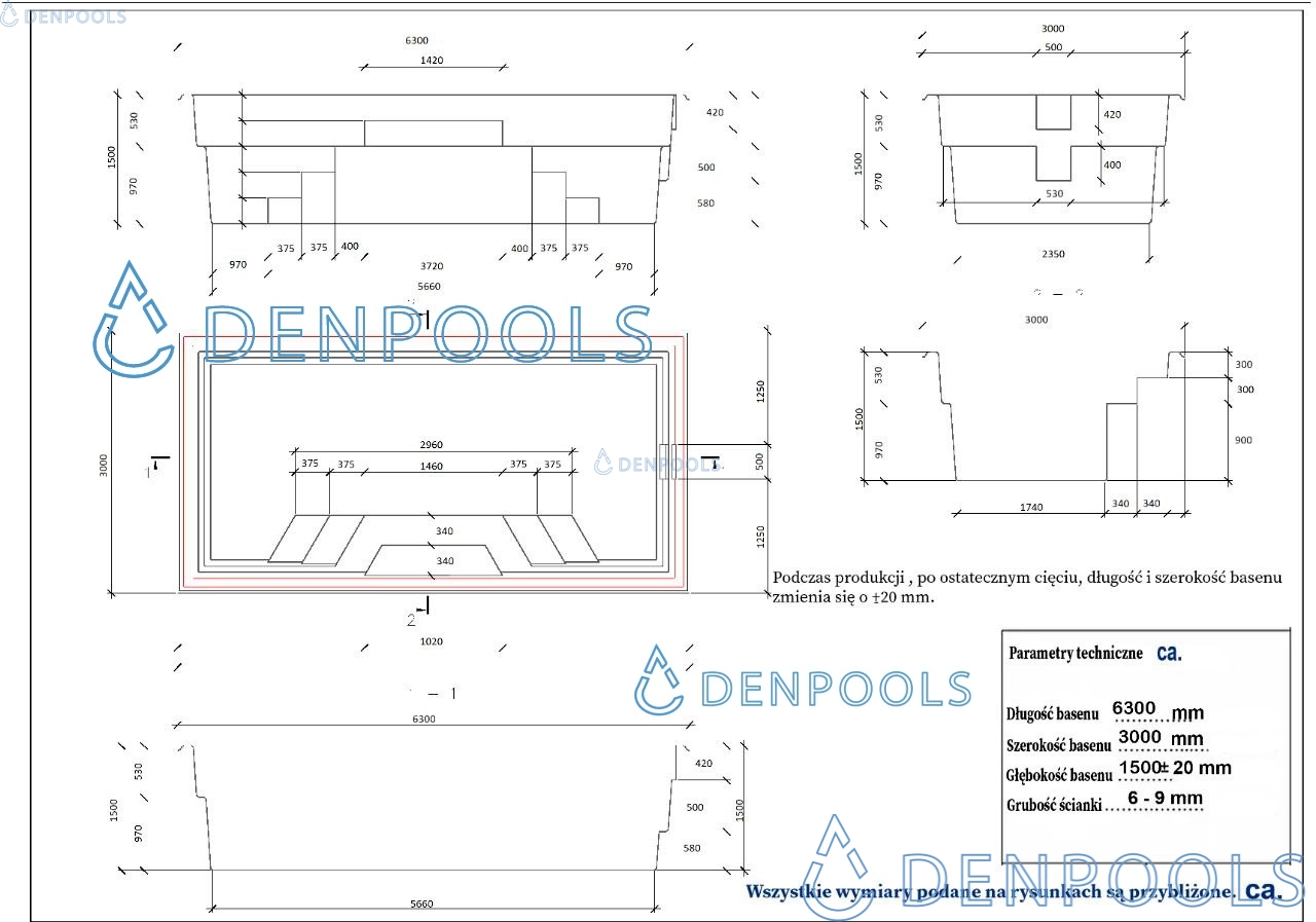 Abmessungen: 6,3 m * 3 m * 1,5 m