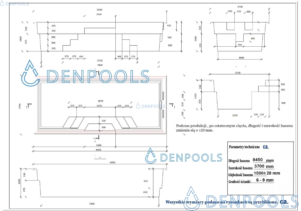 Abmessungen: 8,45 m * 3,7 m * 1,5 m